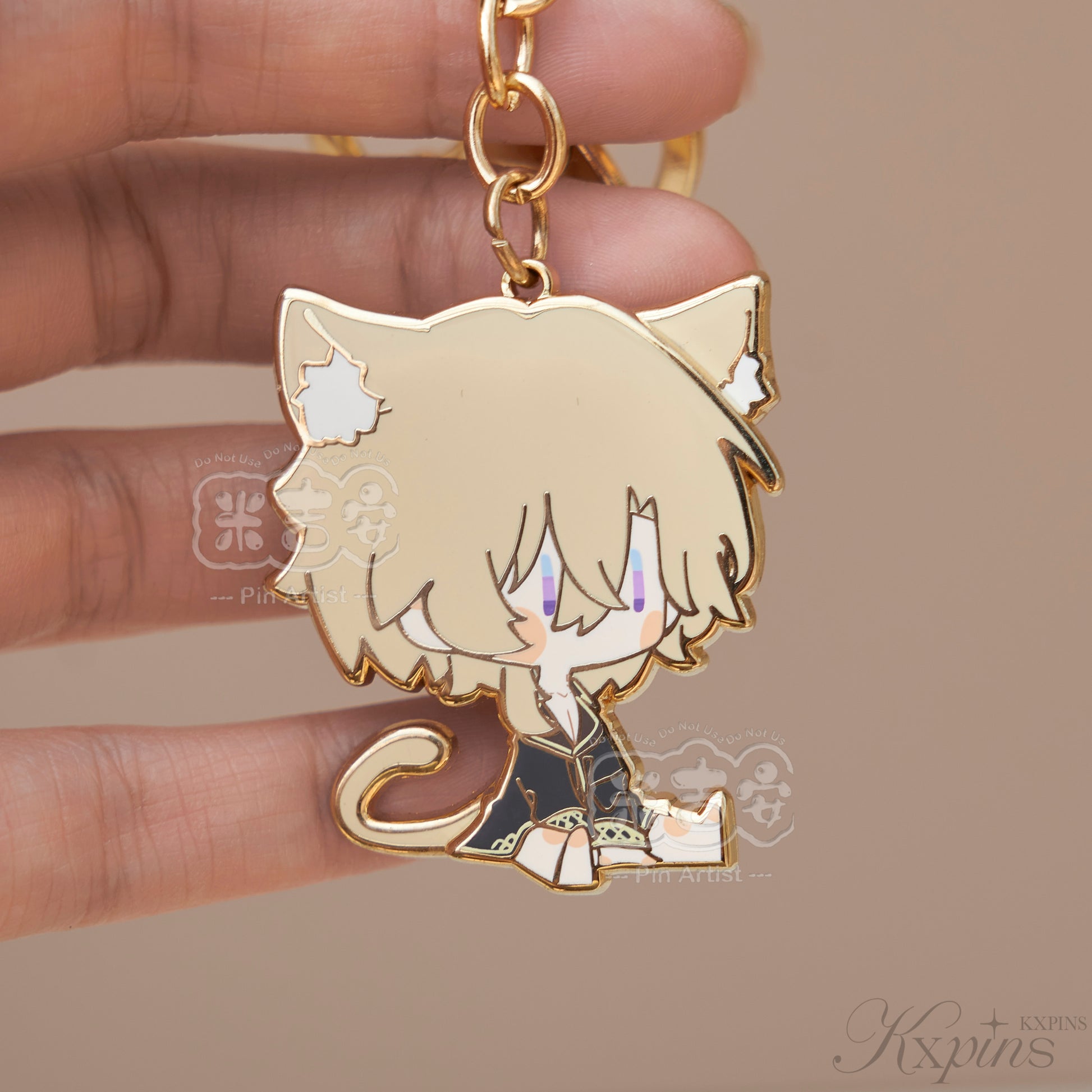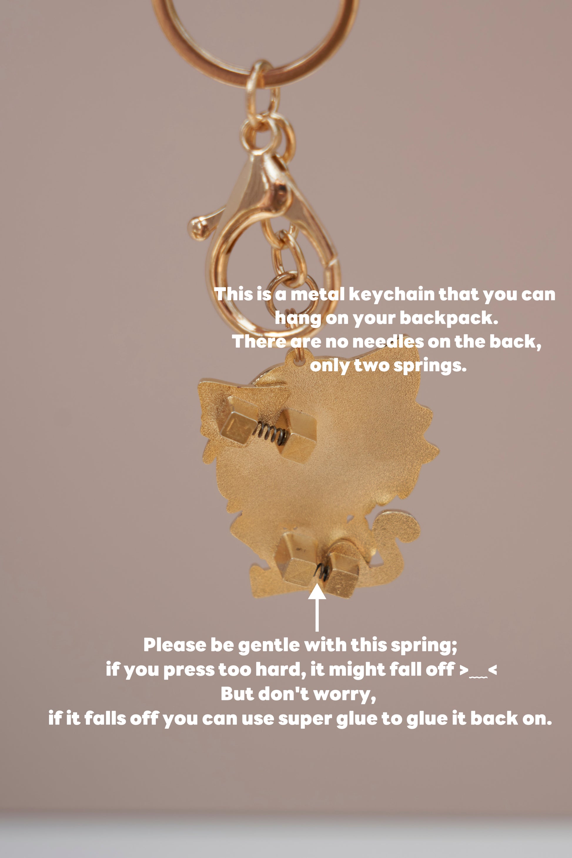 This is a metal keychain that you can hang on your backpack.